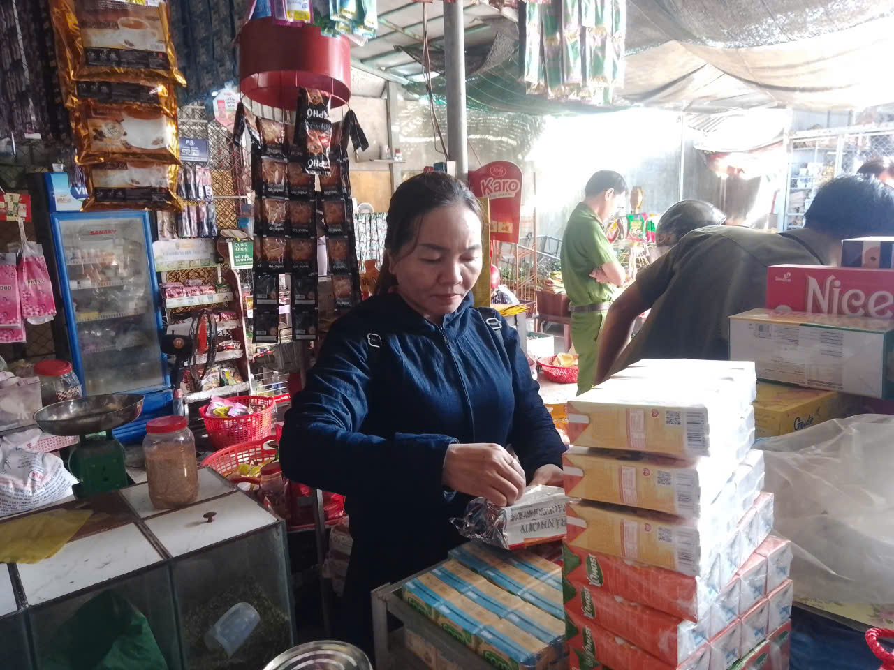Nhằm tăng cường công tác quản lý, kiểm tra, giám sát và đảm bảo an toàn thực phẩm phục vụ nhân dân trong dịp Tết Trung thu năm 2025, sáng ngày 1/10/2025, Đoàn đã kiểm tra các cơ sở kinh doanh tại chợ Gò Gai, thôn Xuân Vinh và các cơ sở khu vực ngoài chợ trên địa bàn xã; nội dung kiểm tra tập trung vào nhãn sản phẩm hàng hoá; nguồn gốc sản phẩm hàng hoá, nguyên liệu, phụ gia thực phẩm; giấy chứng nhận đủ điều kiện ATTP; giấy chứng nhận sức khoẻ đối với người lao động; điều kiện cơ sở, trang thiết bị dụng cụ, điều kiện về con người…