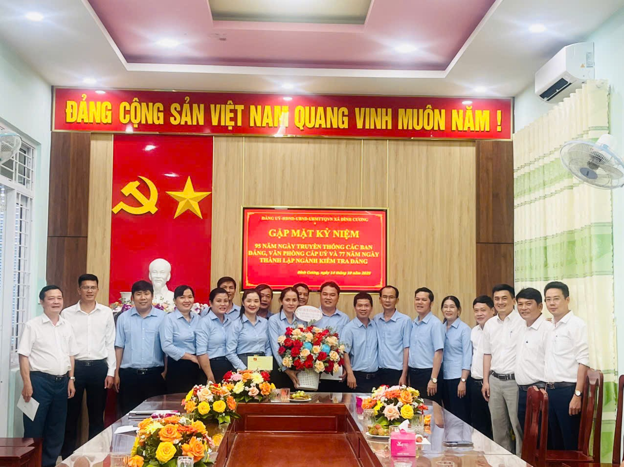 Nhân kỷ niệm 95 năm Ngày truyền thống các Ban Đảng, Văn phòng cấp ủy và 77 năm ngày thành lập Ngành Kiểm tra Đảng, chiều 14/10/2025, Đảng ủy, HĐND, UBND, UBMTTQVN xã Đình Cương tổ chức gặp mặt cán bộ, công chức, người lao động của các ban ngành. Tham dự buổi lễ có các đồng chí Thường trực Đảng ủy, UVBTV, lãnh đạo UBND xã và cán bộ, công chức, người lao động của các phòng, ban.