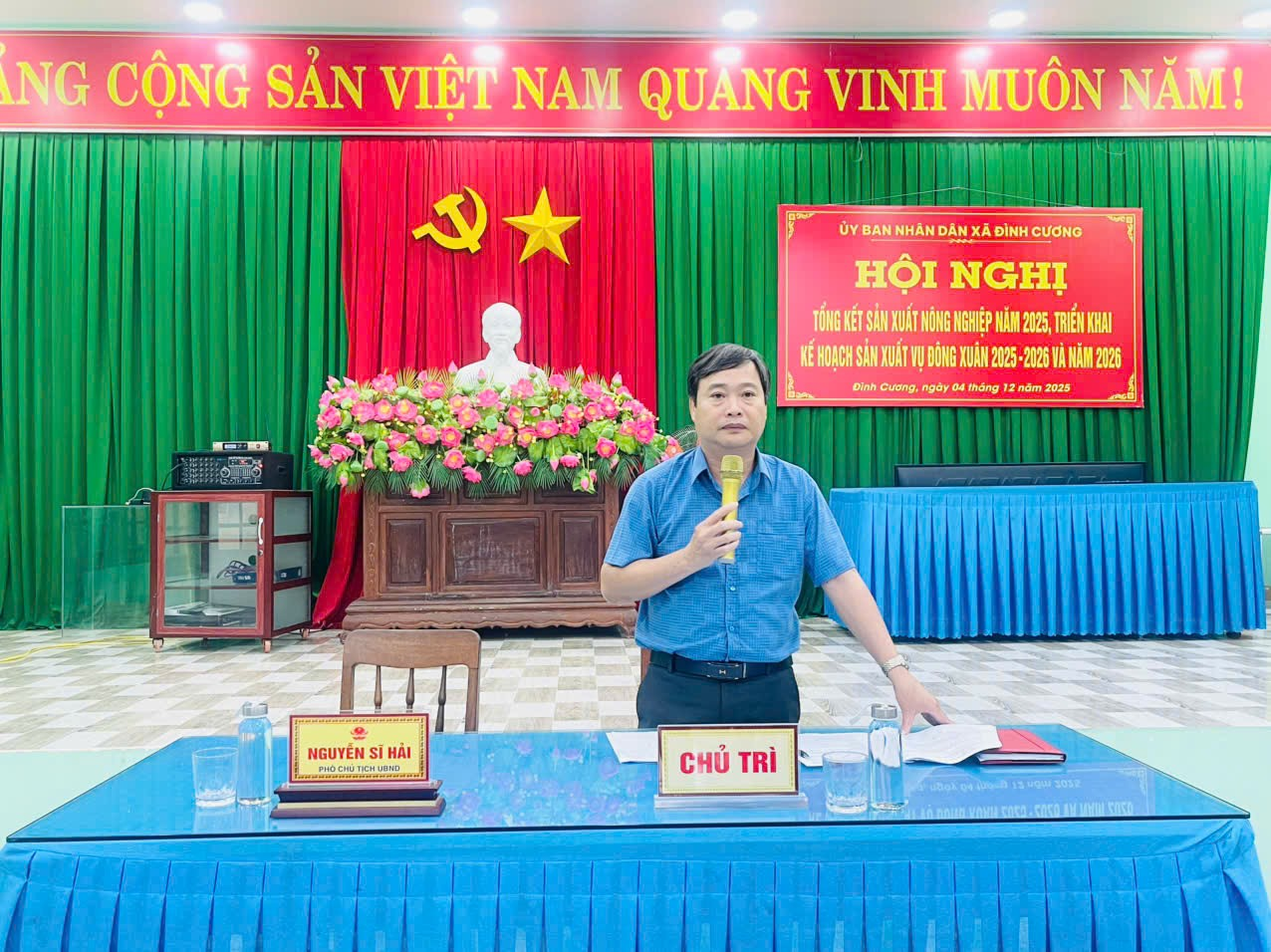 Chiều ngày 04/12/2025, UBND xã Đình Cương tổ chức Hội nghị tổng kết sản xuất nông nghiệp năm 2025, triển khai sản xuất vụ Đông xuân 2025-2026 và năm 2026. Đồng chí Nguyễn Sĩ Hải – Phó Chủ tịch UBND xã chủ trì.